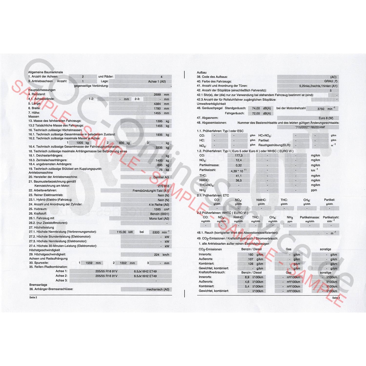 Papiers COC pour Mercedes-Benz (Certificat de Conformité)