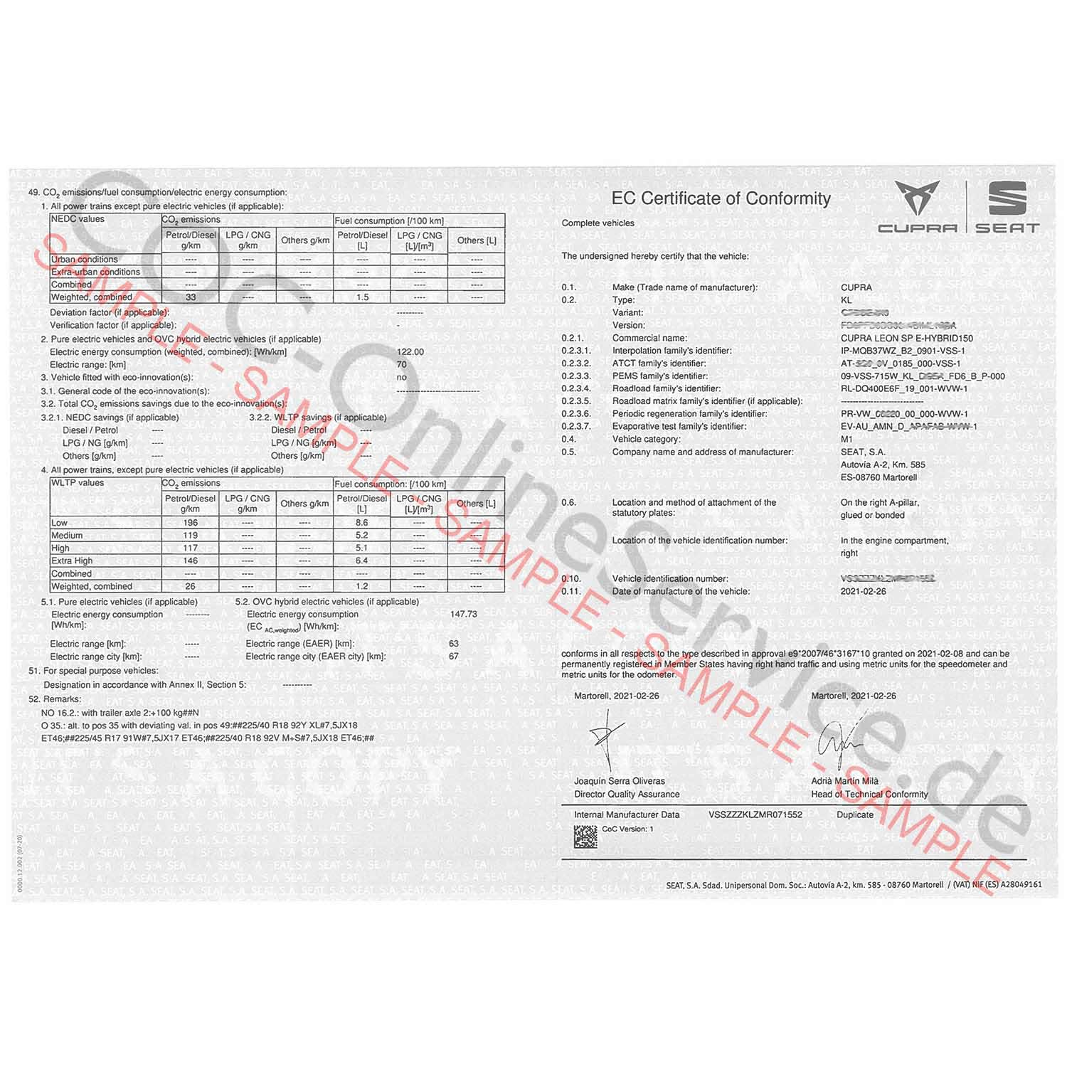 Indien levering van een COC voor uw chassisnummer (VIN) niet mogelijk is, bijvoorbeeld omdat het voertuig te oud is of niet gebouwd is voor de Europese markt, zullen wij de bestelling direct annuleren en de volledige aankoopprijs terugbetalen.